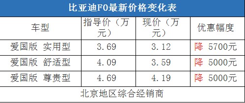 近日,編輯從北京地區(qū)比亞迪綜合經(jīng)銷商處了解到,近期比亞迪F0的現(xiàn)車比較充足,有紅色和銀色現(xiàn)車,基本上可以滿足消費者在春節(jié)前的購車需求。目前購車最高可以優(yōu)惠5700元現(xiàn)金,但是購車需要在店內(nèi)做一條龍服務(wù)才可以,其中車輛四項基本保險可以打8.5折(約合2200-2500元左右),銷售人員透露這個折扣到店還可以再議。以下是比亞迪F0最新價格變化表: