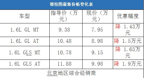 近日編輯從東風悅達起亞4S經(jīng)銷商處了解到,賽拉圖的現(xiàn)車較少,購車沒有現(xiàn)金方面的優(yōu)惠。相比之下,如果消費者在綜合經(jīng)銷商處購車,全系的現(xiàn)車比較充足,以藍色和銀色為主,購車最高有1.9萬元的現(xiàn)金優(yōu)惠。以下是賽拉圖最新價格變化表: