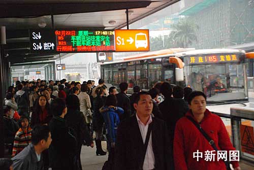 中新網(wǎng)廣州2月22日電 (吳敏平 謝平江 程景偉)廣州BRT(快速公交)自本月20日正式營運(yùn)以來一直問題不斷,今天BRT終于迎來節(jié)后第一個(gè)星期一的“大考”。今天下午,記者與乘客一同搭乘BRT,體驗(yàn)這個(gè)一直備受爭(zhēng)議的交通新工程能否順利通行。