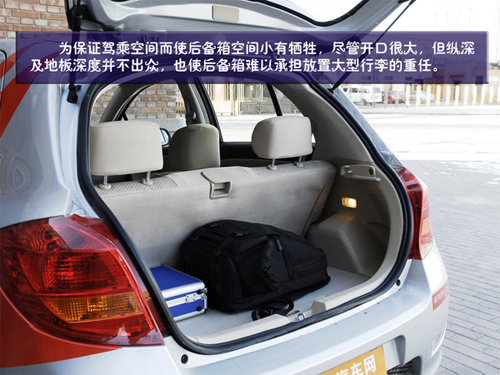 為保證足夠的駕乘空間而使得后備箱空間小有犧牲,盡管開(kāi)口很大,但縱深及地板深度并不出眾,也使后備箱難以承擔(dān)放置大型行李的重任,我們的一個(gè)箱子和一個(gè)攝影包放進(jìn)去并不擁擠,但余下的空間恐怕只能再擠下一箱純凈水。當(dāng)然我們相信凌傲的車主更多的是追求駕駛的樂(lè)趣,如果您需要的是空間,或許應(yīng)該考慮的是酷熊。尾箱側(cè)面還有一個(gè)側(cè)壁照明燈,在光線不好時(shí)后備箱也可以看的一清二楚。