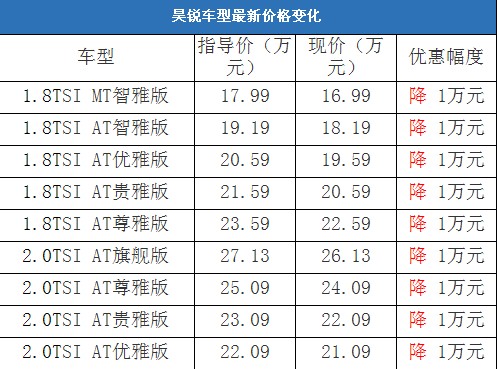 近日,編輯從北京地區(qū)上海大眾斯柯達(dá)4S經(jīng)銷商處了解到,昊銳有少量現(xiàn)車(紅色、灰色和黑色);目前購(gòu)車可以優(yōu)惠1萬(wàn)元,經(jīng)銷商透露消費(fèi)者到店詳談還會(huì)有更多優(yōu)惠。以下是昊銳最新價(jià)格變化表: