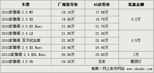 據(jù)廣汽本田4S店銷售人員介紹,目前雅閣全系現(xiàn)車供應(yīng)依然比較緊張,只有部分車型有少量現(xiàn)車。其中2.0排量全系優(yōu)惠僅在2000元左右,個(gè)別店甚至沒有優(yōu)惠,2.4排量除百萬紀(jì)念版、EX導(dǎo)航版有少量現(xiàn)車之外,其它款均需要預(yù)訂,現(xiàn)車優(yōu)惠幅度也在5千元-1萬元之間。目前訂車的話,最少也需要等1個(gè)月左右時(shí)間,訂金為5000元。