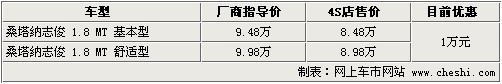 據(jù)4S店銷售人員介紹:桑塔納志俊系列目前共有2款車型,分別為基本型和舒適型,基本型是在休閑型基礎上增加配置的一款新車型,售價為9.48萬元。目前1.8升手動基本型無現(xiàn)車,預訂最短等1周時間,最長等3周;1.8升手動舒適型有現(xiàn)車,顏色為黑色。目前全系2款車型最高優(yōu)惠1萬元,最低售價8.48萬,喜歡的消費者可及時與店內(nèi)聯(lián)系。