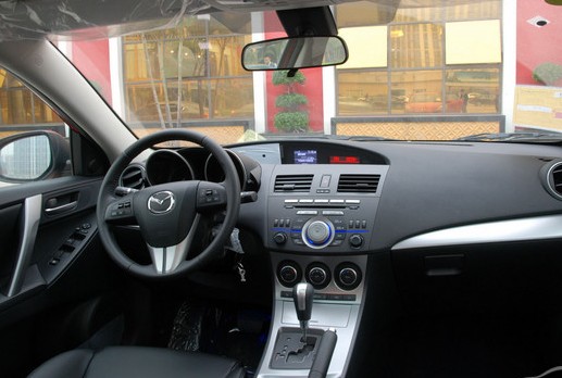 馬自達3的內(nèi)飾采用了全黑配色,運動取向立現(xiàn)。中控臺設(shè)計甚為特別,自上而下分布的功能區(qū)域其實處在不同的平面之上,也就是說,馬自達3的中控臺是立體的褶皺面。儀表臺上,是兩個碩大的的炮筒狀儀表,至于行車信息顯示則居于中空最上方一弧形內(nèi)。作為一輛進口車,馬自達3用他精致的內(nèi)飾做工告訴我們什么是原裝日本車的質(zhì)感,只有英朗的內(nèi)飾工藝能與之一拼。