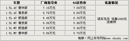據(jù)長安汽車4S店銷售人員介紹,目前兩廂版悅翔現(xiàn)車比較齊全,不過部分顏色現(xiàn)車較少,有意購買的朋友還需從速,全系車型優(yōu)惠1000元。如有時(shí)間到店看車詳談,除了基本優(yōu)惠外還可以贈(zèng)送裝飾。
