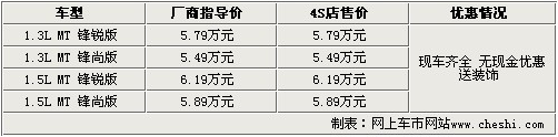 據(jù)長城汽車4S店銷售人員介紹,長城凌傲車型目前1.3L鋒銳版、1.3L鋒尚版、1.5手動鋒銳版和1.5手動鋒尚版有現(xiàn)車,顏色比較齊全。全系沒有任何優(yōu)惠,顧客到店購車可以贈送裝飾。