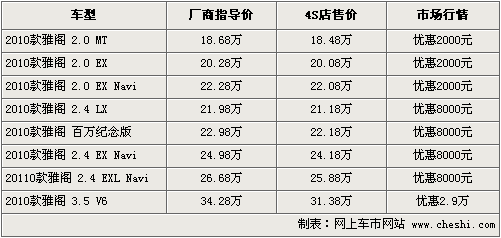 據(jù)廣汽本田4S店銷(xiāo)售人員介紹,目前雅閣全系現(xiàn)車(chē)供應(yīng)較為充足,顏色方面也比較齊全,3.5排量最高可優(yōu)惠近3萬(wàn)元。而2.0排量車(chē)型的優(yōu)惠幅度較小,三款車(chē)型均只優(yōu)惠2000元,2.4排量車(chē)型的優(yōu)惠8000元。北京地區(qū)各4S店由于訂單不同,各店銷(xiāo)售的現(xiàn)車(chē)顏色有所不同,消費(fèi)者在購(gòu)買(mǎi)前可以多去幾家4S店。