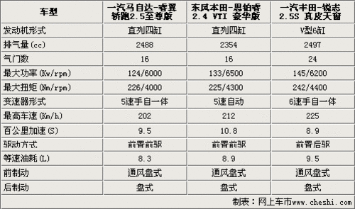 通過(guò)以上橫向?qū)Ρ龋梢钥闯鲱R磙I跑、思鉑睿和銳志的排量都在2.4這個(gè)區(qū)間,并且都具備了日系發(fā)動(dòng)機(jī)傳統(tǒng)的特點(diǎn):性能良好、油耗經(jīng)濟(jì),但是發(fā)動(dòng)機(jī)形式卻完全不同。從官方公布的等速油耗來(lái)看,睿翼轎跑的油耗要低于本田思鉑睿和豐田銳志,這與一汽馬自達(dá)強(qiáng)調(diào)的輕量化設(shè)計(jì)車(chē)身是分不開(kāi)的。銳志采用了V型6缸發(fā)動(dòng)機(jī),該發(fā)動(dòng)機(jī)運(yùn)用了雙VVT-I技術(shù),因此在動(dòng)力方面明顯要優(yōu)越于睿翼轎跑和思鉑睿,同時(shí)再加上銳志為后驅(qū)車(chē)型,再加上百公里加速僅為8.9秒,就從這兩點(diǎn)就也可以看出銳志是一款偏運(yùn)動(dòng)的車(chē)型。在變速器方面,銳志略勝一籌,配備了手自一體式6速自動(dòng)變速箱,思鉑睿則是5速自動(dòng)變速器,是三款車(chē)型中配置較低的。三款車(chē)型的制動(dòng)系統(tǒng)都是前通風(fēng)盤(pán)后實(shí)心盤(pán)。