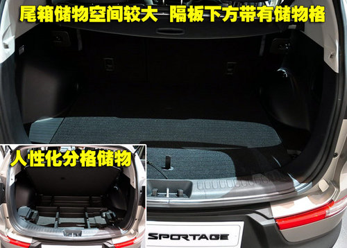 對(duì)于起亞SLC而言,儲(chǔ)物是它的最大強(qiáng)項(xiàng),當(dāng)后排座椅完全放倒下,備箱儲(chǔ)物空間進(jìn)一步加強(qiáng)。另外備箱的開(kāi)口也很大,便于取放較大的物品。備箱隔板下另設(shè)有暗藏的儲(chǔ)物格,并且?guī)в蟹指粼O(shè)計(jì),存放小物品時(shí)也更加方便,人性化設(shè)計(jì)值得稱贊。