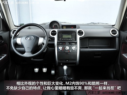 重新設(shè)計(jì)的座椅在腿部和側(cè)向支撐方面都值得稱(chēng)道,不足的是,座椅并不能進(jìn)行高低調(diào)節(jié),這點(diǎn)上還沒(méi)有它的兄弟M1呢。同酷熊一樣,超大的空間也是哈弗M2最大的亮點(diǎn),身高為1.78米的乘客坐在前排調(diào)到合適的駕駛位置后,頭部到車(chē)頂還有兩拳有余的距離,后排空間的頭部和腿部的空間也是大的出奇,而且完全有資格與更高級(jí)別的車(chē)型較量。按比例放倒的后排座椅增強(qiáng)了實(shí)用性,如果將座椅全部放倒,可形成空間巨大的載貨平臺(tái)。