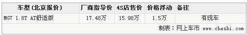 據(jù)名爵汽車4S店銷售人員介紹,目前北京地區(qū)MG7車型的現(xiàn)車并不充足,只有1.8T舒適版手自一體車型有現(xiàn)車,其他車型暫無現(xiàn)車,如有意向購買需要預訂,訂金為5000元,預計提車時間為一個月左右。購買有現(xiàn)車的1.8T舒適版手自一體車型可以獲贈價值1萬5千元的大禮包,其中包括8000元的現(xiàn)金優(yōu)惠和7000元的裝飾贈送。