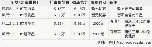 風(fēng)云2兩廂共有4款車型,指導(dǎo)價(jià)為5.18萬(wàn)-6.08萬(wàn)。根據(jù)奇瑞4S店銷售人員介紹,目前店內(nèi)銷售的車型只有進(jìn)取型和豪華型兩款,現(xiàn)在購(gòu)車即可享受2000元現(xiàn)金優(yōu)惠,此外4S店還贈(zèng)送三年12次免費(fèi)保養(yǎng)。