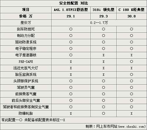 在主動(dòng)安全性能方面三款車型所能提供的電子系統(tǒng)都比較細(xì)致,一般消費(fèi)者所注意的ABS、ESP功能都能夠在3款車型的系統(tǒng)中體現(xiàn)。被動(dòng)安全方面,前排雙氣囊、側(cè)面氣囊、氣簾都是3款車型的標(biāo)準(zhǔn)配置。其中奔馳基于車輛整體安全考慮研發(fā)的PRE-SAFE安全系統(tǒng)通過(guò)主動(dòng)、被動(dòng)以及車窗等設(shè)備為駕乘者提供綜合的安全保障,這方面的確要比其它兩款競(jìng)爭(zhēng)車型更為細(xì)致。因此,在這樣的基礎(chǔ)上您可能也會(huì)選擇安全配置更加全面的那一款。