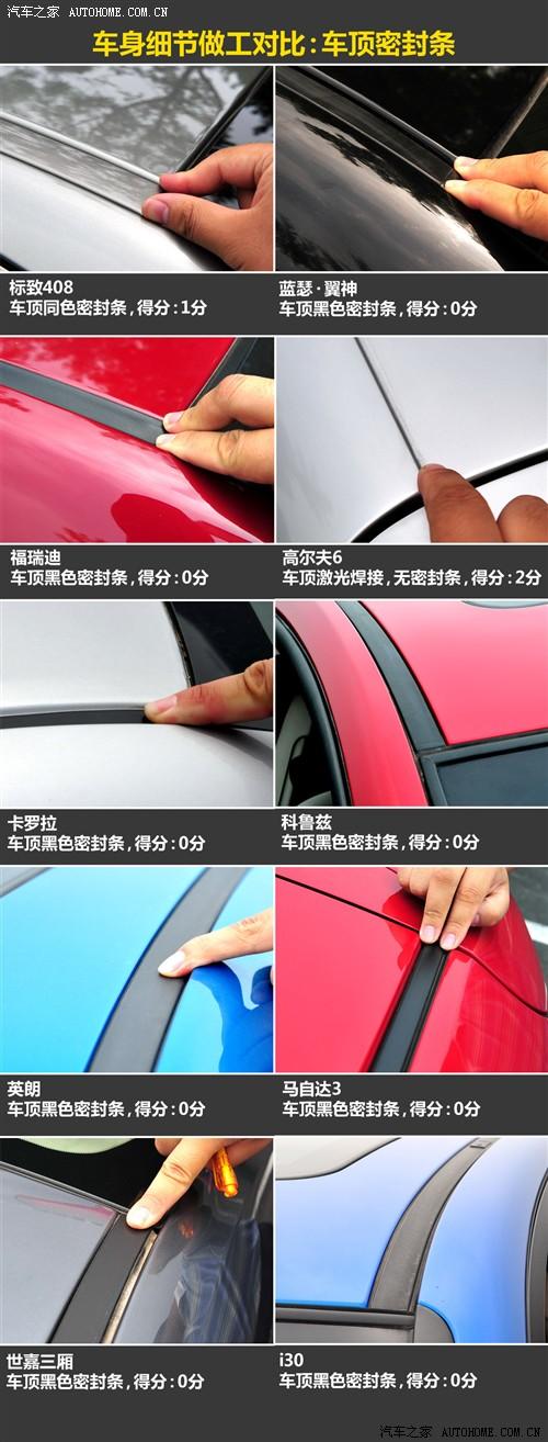 車頂沒有采用激光焊接同時(shí)只有黑色密封條的,得0分
