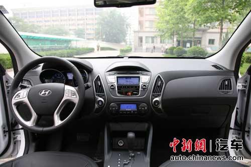 我們拿到的這輛ix35是2.0GLS尊貴版,采用全黑色內(nèi)飾,除此之外還有上黑下淺的另一種內(nèi)飾風(fēng)格。全黑色內(nèi)飾顯然更招年輕人待見。ix35的內(nèi)飾采用了對(duì)稱設(shè)計(jì),中控面板造型簡練,中間的六邊形設(shè)計(jì)和四周的線條再次與車身風(fēng)格呼應(yīng)。內(nèi)飾黑底色上點(diǎn)綴的銀色恰到好處,只是幾乎整個(gè)內(nèi)飾采用的都是印花硬性材質(zhì),車內(nèi)氣味比較明顯,多少與這輛車20萬出頭的價(jià)位有些不符。另外,豎條形的空調(diào)出風(fēng)口似乎很容易讓人想起伊蘭特。