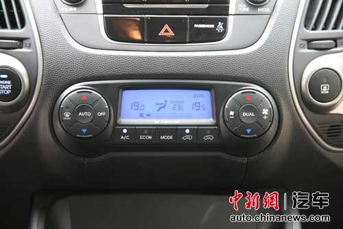 作為一輛20萬元出頭的車,該有的配置ix35差不多都有了——無鑰匙啟動(dòng)、雙區(qū)自動(dòng)空調(diào)、倒車影像、雙天窗、自動(dòng)防眩目后視鏡、自動(dòng)頭燈等等。無鑰匙啟動(dòng)是ix35最大的亮點(diǎn)之一。除兩款2.0新銳版外,其他幾款ix35皆配有無鑰匙進(jìn)入和啟動(dòng)系統(tǒng),這在很大程度上是區(qū)分一輛車檔次的標(biāo)志性配置。此外扶手箱里還備有鑰匙插孔,一旦遙控鑰匙電池耗盡導(dǎo)致無法通過無鑰匙啟動(dòng),只需將鑰匙插進(jìn)插孔,就可以啟動(dòng)汽車。我們?cè)跍y(cè)試時(shí)做了個(gè)實(shí)驗(yàn),在汽車啟動(dòng)后將鑰匙拿出車外。此時(shí)儀表上會(huì)顯示“Key out”,但是汽車不會(huì)自動(dòng)熄火,也依舊可以駕駛,只是如果熄火后要再啟動(dòng)就不可能了。
