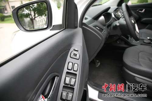 圖注:后視鏡帶一鍵折疊功能,在窄路上停車還是很有實用性的。另外,ix35只有司機側的車窗支持一鍵升降。