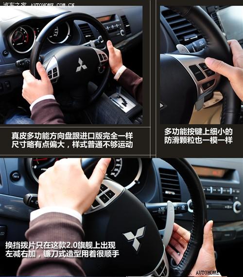 除了這兩樣標(biāo)準(zhǔn)配置以外,翼神還有兩個(gè)亮點(diǎn),第一個(gè)即高配車型上的儀表盤,中央顯示屏色彩相當(dāng)炫目,非常漂亮!不光是視覺效果好,可以顯示的行車信息也是相當(dāng)?shù)呢S富,可謂應(yīng)有盡有;第二個(gè)則是換擋撥片,在2.0升旗艦版車型上面提供了與進(jìn)口Lancer EX相同的撥片,而且在實(shí)際使用中的反應(yīng)很靈敏迅速。不過要想真正追求駕駛樂趣,顯然手動擋車型才能滿足。換擋行程很短,有一定的吸入感,既緊湊又不會生硬,這種感覺對于年輕人來說肯定夠誘惑,雖然說這款來自愛信的變速箱并不像CVT一樣是進(jìn)口的。