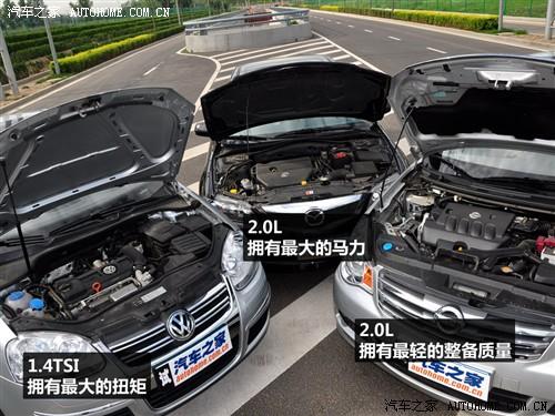 在發(fā)動機方面,馬自達6的MZR發(fā)動機是一款典型的高轉(zhuǎn)速產(chǎn)品,不過安裝在這款整備質(zhì)量1427公斤的中型車上,動力表現(xiàn)盡管也不錯,但相比速騰和軒逸還是不像他們那么激進。速騰的1.4T發(fā)動機大家已經(jīng)十分熟悉,盡管是三款發(fā)動機中最小的功率,但扭矩卻是最大的,而且從1800轉(zhuǎn)左右就開始爆發(fā),所以動力性能也不錯。駕駛起來讓人感覺最快的還是軒逸,因為這款發(fā)動機本身的數(shù)據(jù)就很不錯,扭矩超過馬自達6的發(fā)動機,在我們以前的測試中突破了9秒的百公里加速成績。