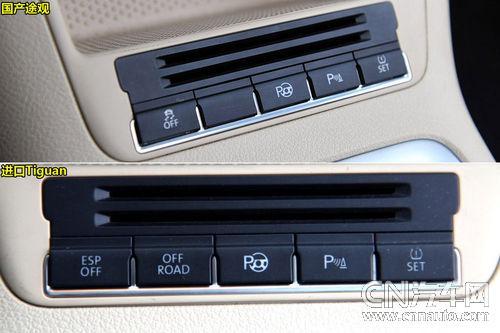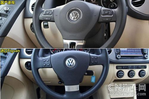 內(nèi)飾及細(xì)節(jié)差異:國(guó)產(chǎn)車型在一些細(xì)節(jié)設(shè)計(jì)上要更具優(yōu)勢(shì),比如方向盤(pán)采用了高爾夫6式的新風(fēng)格,方向盤(pán)輻條和多功能按鍵在金屬鍍鉻的裝飾下,明顯更具質(zhì)感。此外,包括大燈調(diào)節(jié)旋鈕、電動(dòng)車窗按鈕都增加了金屬風(fēng)格的裝飾。雙區(qū)自動(dòng)恒溫空調(diào)也啟用了和斯柯達(dá)昊銳相同款式的最新設(shè)計(jì)面板。而在一些并不是十分重要的配置上,國(guó)產(chǎn)車型省略后以進(jìn)一步降低價(jià)格,比如音響面板上方的副駕駛席氣囊指示燈變成了卡片槽,手套箱中的副氣囊開(kāi)關(guān)也沒(méi)有再出現(xiàn)。國(guó)產(chǎn)車型由于兩種排量多達(dá)8款車型配置,導(dǎo)航系統(tǒng)、全景天窗都可以選裝配置也讓消費(fèi)者多了更多選擇。尤其是對(duì)于低端消費(fèi)者,國(guó)產(chǎn)途觀還是具備相當(dāng)?shù)奈Α?/p>
