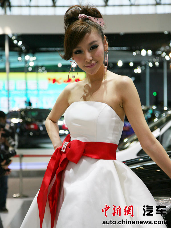北京車展群芳競(jìng)艷:靚模一襲白裙秀香肩
