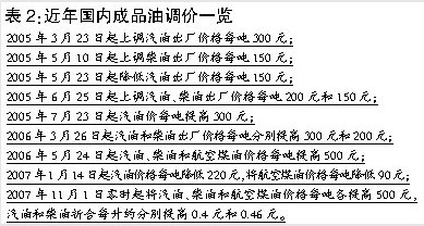 從國家發(fā)改委獲悉,我國石油消費近50%依靠國外進口,國際油價的上漲使國內成品油煉制企業(yè)成本劇增,批零倒掛的局面令煉油廠長期承擔著巨額虧損,一直處于“饅頭賣不過面粉價”的狀態(tài)。按每桶80美元計算,煉油企業(yè)每生產一噸成品油虧損1000元。因此,面對國際原油價格的驚人漲勢,國內成品油價格陷入了不得不調整的境地。另外,既然由政府決定是否調價,那政府就不能僅從經濟角度出發(fā),社會輿論、社會穩(wěn)定和弱勢群體的利益都是慎重調價的前提。而選在11月1日這天提高國內成品油價格,國家考慮了各行業(yè)的承受能力,如農業(yè)“三秋”已近尾聲,農民對柴油的需求量減少等。