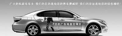 油價突破5元大關,私家車車主不禁為“錢袋子”犯愁,不少車主也紛紛想盡各種辦法降低油耗或尋找“門路”賺“外快”貼補養(yǎng)車費用。最近車主小高就從朋友那里發(fā)現(xiàn)一個新穎的賺錢方式,“只要把車身‘借’給商家打打廣告,車輛完全不會受到損壞,每個月還能賺到三百來塊的油錢,一年算下來就有3000多元的收入”。這讓貸款買車的小高很心動,小高算了一下,3000多元的收入基本上相當于一年保險費用,“這樣也挺好,多多少少能減輕一點養(yǎng)車負擔”。