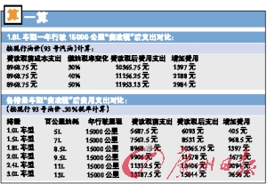 業(yè)內(nèi)預(yù)測,國家開征燃油稅后稅率將在30%~50%之間。以該車主的1.8L排量車型計(jì)算,假設(shè)一年行駛里程為15000公里左右,平均油耗為8.5升/百公里左右,每年需加1275升油。按照目前廣州93號油零售價(jià)每升6.25元計(jì)算,車主每年在油費(fèi)上需要支出7968.75元,加上養(yǎng)路費(fèi)1000元,目前每年這部分的總花費(fèi)為8968.75元。