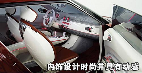 現(xiàn)代Veloster coupe概念車最大的特點(diǎn)便是采用了大面積玻璃車頂,內(nèi)廂為明亮的紅色配白色,再用高亮度金屬點(diǎn)綴,具有韓國(guó)式的現(xiàn)代感。中控臺(tái)上的音響系統(tǒng)可以連接蘋果iPod,短小的變速擋桿旁邊是發(fā)動(dòng)機(jī)啟動(dòng)按鈕。