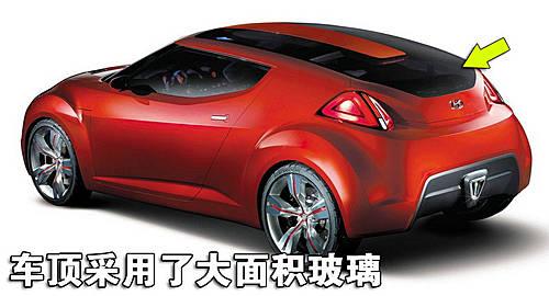 現(xiàn)代Veloster coupe概念車是由現(xiàn)代設(shè)計(jì)與研發(fā)中心研發(fā)的第三代概念車,車名Veloster是velocity速度和Rodster跑車之意,將出現(xiàn)在本屆法蘭克福車展上。該車長(zhǎng)寬高分別為4.1米、1.79米和1.45米,軸距2.6米。