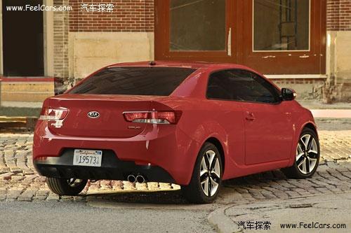 這款Forte Koup整體沿用了Forte動(dòng)感時(shí)尚的外觀(guān)造型,并且在流線(xiàn)上更加富有沖擊力。寬大的進(jìn)氣口以后后方的擾流板和雙排氣管顯示出了足夠的侵略性。