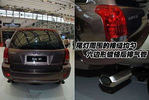 威麟X5的尾部也非常有特點(diǎn),后尾燈和霧燈都采用耀眼、新穎的紅色設(shè)計(jì),周圍的接縫也非常均勻。而且尾燈才采用LED設(shè)計(jì)。這款車型采用六邊形鍍鉻雙排氣管,給整車增添了許多運(yùn)動(dòng)氣息。