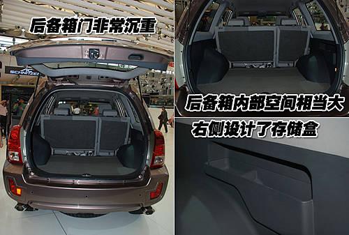 威麟X5的后備箱門非常沉重,雖然采用液壓挺桿支撐,淡開(kāi)啟還需費(fèi)些力氣。行李箱內(nèi)的空間非常大,就算再多一排座椅也完全可以接受。行李箱右側(cè)設(shè)計(jì)了存儲(chǔ)盒,可以放置一些工具等物品。