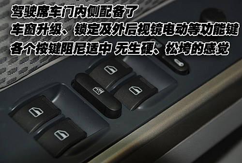 這款車的駕駛席車門內(nèi)側(cè)配備了控制面板,帶有車窗升降、鎖定、中控鎖及外后視鏡電動調(diào)節(jié)等功能。各個按鍵阻尼適中,無生硬、松垮的感覺。