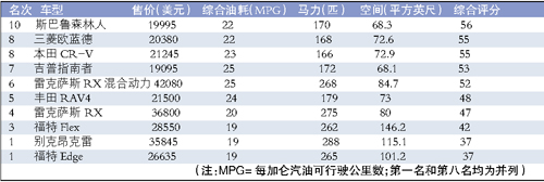 在福布斯公布的2009年度十大SUV中,除了福特Flex和Edge之外,其余八款在中國均有銷售。(陳鑫欣)
