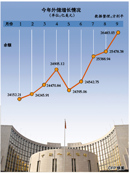 數(shù)據(jù)顯示,9月末,國家外匯儲備余額為26483億美元,第三季度,外匯儲備新增1840.25億美元,增長規(guī)模創(chuàng)下季度新高,規(guī)模達到整個上半年的3.3倍。7、8、9月新增外匯儲備分別達846.19億、89.44億和1004.65億美元,其中7月和9月,分別創(chuàng)下單月歷史最高和次高水平。