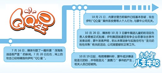 21日,內蒙古警方就有人在網(wǎng)絡媒體發(fā)帖損害伊利商譽案做出通報,稱案件已經(jīng)基本告破,攻擊伊利“QQ星”案件系蒙牛“未來星”品牌經(jīng)理安勇等人的個人行為,與蒙牛公司沒有關系。