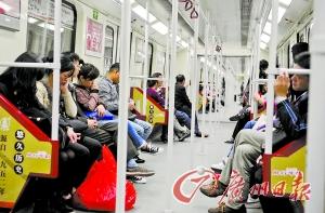 家住五山的陳伯昨日坐三號(hào)線轉(zhuǎn)一號(hào)線前往長(zhǎng)壽路去約朋友喝茶,路上不但有乘客為他讓座,車內(nèi)也很寬松。