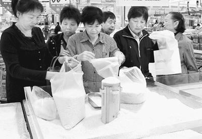 25日是廈門市定向供應(yīng)“優(yōu)惠大米”的第三天,記者看到在大潤發(fā)超市糧油優(yōu)惠專柜前擠滿了前來買大米的市民。家住蓮坂小區(qū)的馬阿姨一次就買了3大袋優(yōu)惠米。她說,家里5口人吃飯,全靠她2000多元的退休金生活,還得照顧兩個身體不好的兄弟,平時的開銷都得精打細(xì)算,原來買的都是1.8元左右的米,現(xiàn)在市場都見不到了,所有大米基本上都漲到2元多。聽說政府為保障低收入群體生活,特供這種“優(yōu)惠大米”,她早早趕來購買。