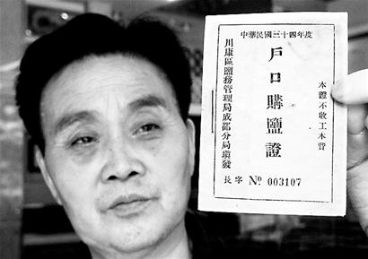 面對(duì)訪客,賀鵬春總愛(ài)拿著毛巾把桌面擦拭了一遍又一遍,然后在上面鋪上報(bào)紙,將信封里的票證掏出輕放在報(bào)紙上。這是一枚沉淀著歷史的票證,從它被拿出來(lái)的那一刻起便飄散著懷舊的韻味,票證已用透明塑料紙來(lái)回包了兩層,但賀鵬春仍然不放心,輕輕擱,輕輕放,生怕有絲毫損壞。談及對(duì)票證的感情,這個(gè)已有40年“藏齡”的61歲老人笑稱,收藏就像是毒癮,一旦迷上,就無(wú)可救藥。