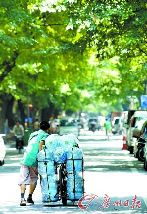 今年春節(jié)后廣州月薪2000元招不到送水工的新聞曾引起全國關(guān)注。日前記者采訪發(fā)現(xiàn)在天河體育中心寫字樓周邊水店的“勤快”送水工在高峰期的八九月份月薪最高竟可達(dá)5000元,而且多數(shù)水店整個夏天幾乎都是在送水工奇“缺”的狀態(tài)下咬牙“挺”過來的。記者調(diào)查發(fā)現(xiàn),由于送水工過于辛苦,已成“短線”工種,部分送水工做一兩年攢下錢即轉(zhuǎn)行,多數(shù)水店難覓3年工齡以上的熟手送水工。