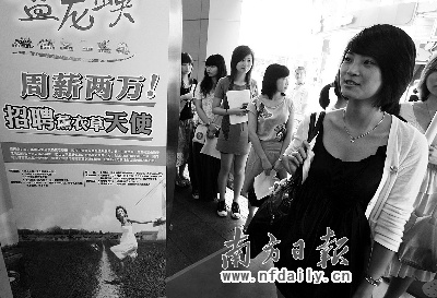 德慶盤(pán)龍峽2萬(wàn)元周薪招聘“薰衣草天使”活動(dòng)進(jìn)入了現(xiàn)場(chǎng)招聘環(huán)節(jié)。記者昨日在招聘現(xiàn)場(chǎng)看到,應(yīng)聘人需先填寫(xiě)報(bào)名表格經(jīng)過(guò)第一關(guān)面試,過(guò)關(guān)后進(jìn)入第二關(guān)———拍照,而第二關(guān)讓不少人笑稱為“選美比賽”。