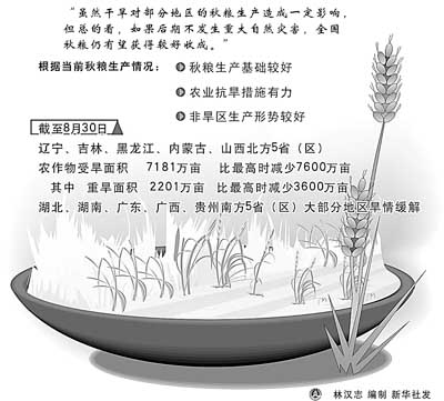 同時,雖然干旱對部分地區(qū)的秋糧生產造成一定影響,但總的看,如果后期不發(fā)生重大自然災害,全國秋糧仍有望獲得較好收成。