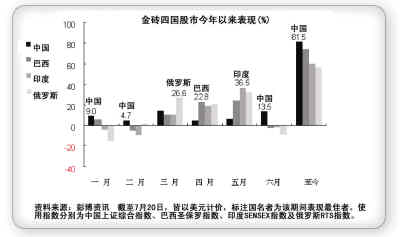 金融海嘯之后,中國(guó)、巴西、俄羅斯、印度在經(jīng)濟(jì)增長(zhǎng)以及財(cái)政上的表現(xiàn)令人刮目相看,股市今年以來(lái)平均漲幅逾六成,中國(guó)的漲幅超過(guò)八成,將成熟國(guó)家遠(yuǎn)遠(yuǎn)拋在后面