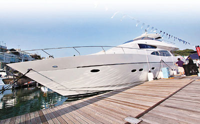 西貢匡湖游艇會(huì)昨日起舉辦為期4日的“國(guó)際游艇展”,有來自臺(tái)灣、法國(guó)、英國(guó)和美國(guó)等共59個(gè)參展商,展出逾百艘游艇,并有附設(shè)釣魚塔的游艇,展品總值約6億元?锖瓮(huì)總經(jīng)理吳宛湄表示,隨著經(jīng)濟(jì)好轉(zhuǎn)及不少內(nèi)地買家來港選購(gòu)游艇。