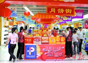 在南城區(qū)的沃爾瑪超市,記者也發(fā)現(xiàn)了類似情況!皩(shí)惠型的月餅是今年整個(gè)月餅市場(chǎng)的主導(dǎo)品種”,該超市銷售員趙小姐表示。