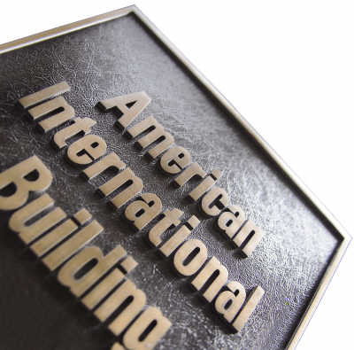AIG標(biāo)識(shí)現(xiàn)在矗立于其全球總部——美國(guó)國(guó)際大廈,黃銅色鐫刻的“美國(guó)國(guó)際大廈”的標(biāo)志已然成為公司的招牌。這座大廈坐落在紐約松木街的街角處,繼世貿(mào)大廈倒塌后成為曼哈頓區(qū)的最高大樓。AIG曾表示,或?qū)⒊鍪圻@座總部大樓,籌集更多資金以償還政府貸款。