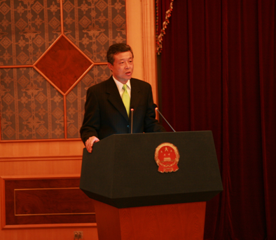 劉曉明大使首先致辭。他對(duì)金永日副外相率朝鮮外務(wù)省主管中國(guó)事務(wù)的同志們來(lái)我館參加聯(lián)誼活動(dòng)表示歡迎,感謝外務(wù)省同志們長(zhǎng)期以來(lái)為發(fā)展中朝關(guān)系做出的不懈努力和積極貢獻(xiàn)。他說(shuō),今年,在兩國(guó)最高領(lǐng)導(dǎo)人的關(guān)心下,中朝關(guān)系發(fā)展順利。雙方保持高層交往,胡錦濤總書(shū)記先后三次向金正日總書(shū)記轉(zhuǎn)達(dá)了重要口信。楊潔篪外長(zhǎng)就任后首次正式出訪即來(lái)朝鮮。不久前,中共中央政治局委員、書(shū)記處書(shū)記、中宣部長(zhǎng)劉云山同志訪問(wèn)朝鮮。中共十七大后,中央領(lǐng)導(dǎo)同志首次出訪即到朝鮮,體現(xiàn)了我黨新一屆中央領(lǐng)導(dǎo)集體高度重視并十分珍惜中朝傳統(tǒng)友誼,并將一如既往地致力于鞏固和發(fā)展中朝友好合作關(guān)系。金正日同志親切會(huì)見(jiàn)并設(shè)宴款待劉云山同志;他還于年初在時(shí)隔七年后來(lái)中國(guó)大使館做客,這些都體現(xiàn)了金正日總書(shū)記和朝鮮勞動(dòng)黨及政府對(duì)中朝兩黨、兩國(guó)關(guān)系的高度重視。