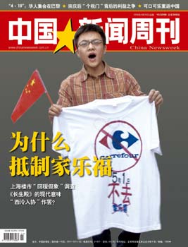 這是21世紀(jì)初中國民眾第三次大規(guī)模抵制洋貨,矛頭指向法國在中國最真實(shí)的存在——遍及30多個城市、擁有112家分店的家樂福超市。傳導(dǎo)鏈條則是人們熟悉的渠道——網(wǎng)絡(luò)社區(qū)、QQ、MSN。 事件發(fā)生后,《中國新聞周刊》記者前往北京、昆明、武漢等地,對“抵制家樂福”的人群、原因和背景進(jìn)行了調(diào)查,這就是本期《中國新聞周刊》的封面故事。