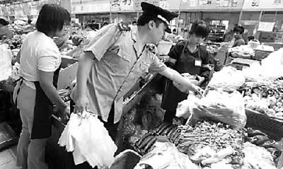 昨天(1日)是全國(guó)實(shí)行“限塑令”的第一天。當(dāng)天,北京各大超市都遵守禁令,對(duì)塑料袋進(jìn)行了明碼標(biāo)價(jià)。不過,記者發(fā)現(xiàn)肯德基仍然提供免費(fèi)塑料袋,而自由市場(chǎng)中的攤販則說“沒聽說過禁令”。